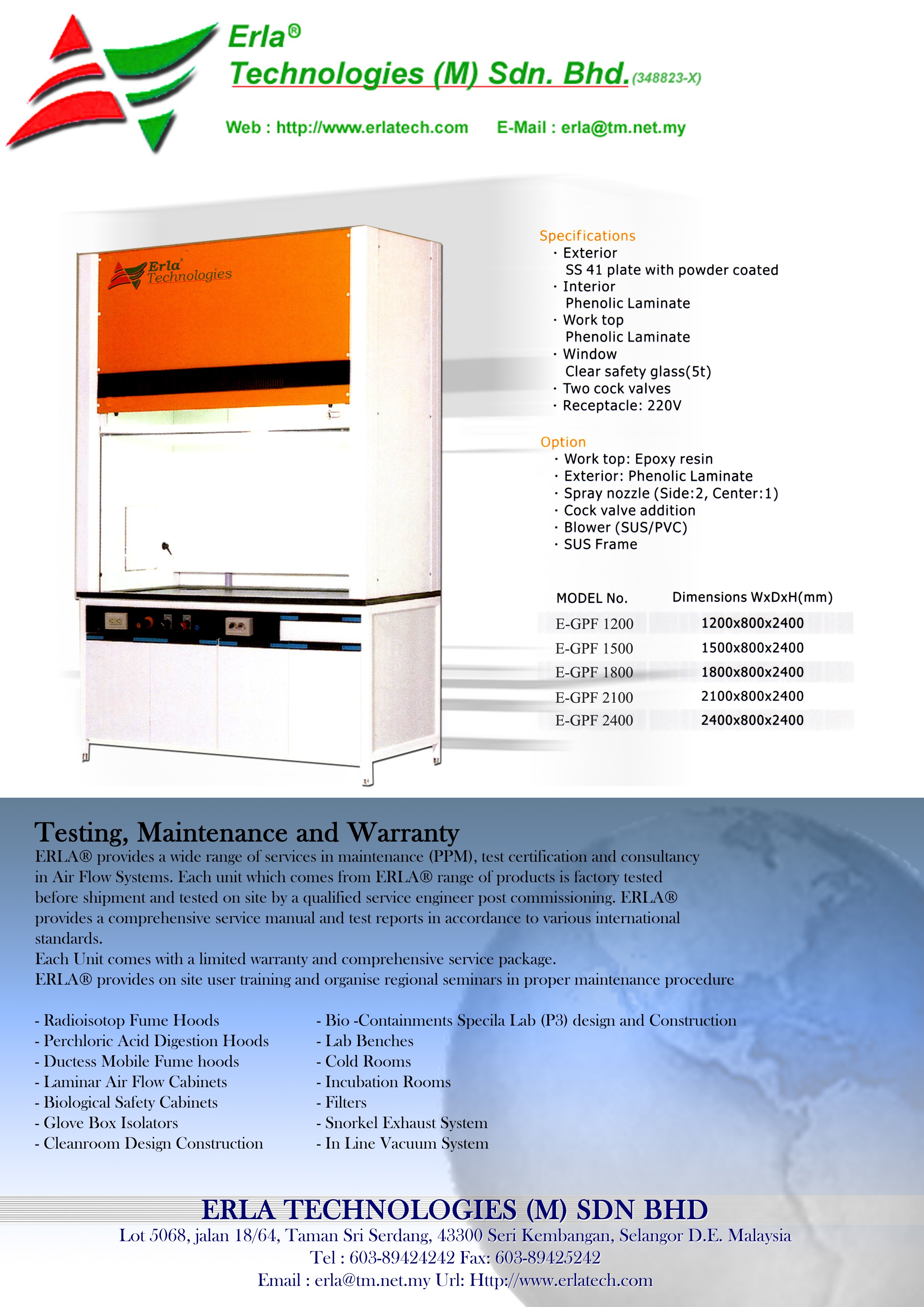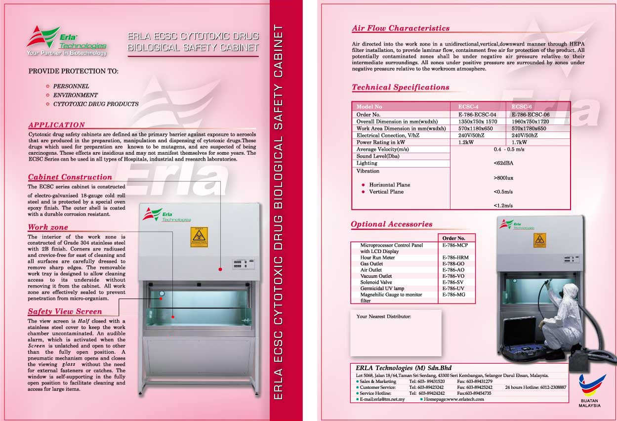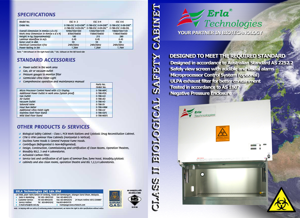 ERLA Technologies (M) Sdn. Bhd. ("ERLA") was founded in Malaysia in 1995 to service the scientific community in the Biosafety and Life Science Industry. ERLA is the pioneer in the manufacturing of Biosafety Cabinets and Laminar Airflow Cabinets since 1995 in Malaysia. During the Nipah Virus Outbreak in Malaysia in 1998, ERLA's expertise were sought by the government agencies to understand the engineering of Biosafety and implementing the same on a laboratory scale. ERLA has a team of experts with a combined experience of more than 50 years in the Biosafety and Clean Air Technology field.